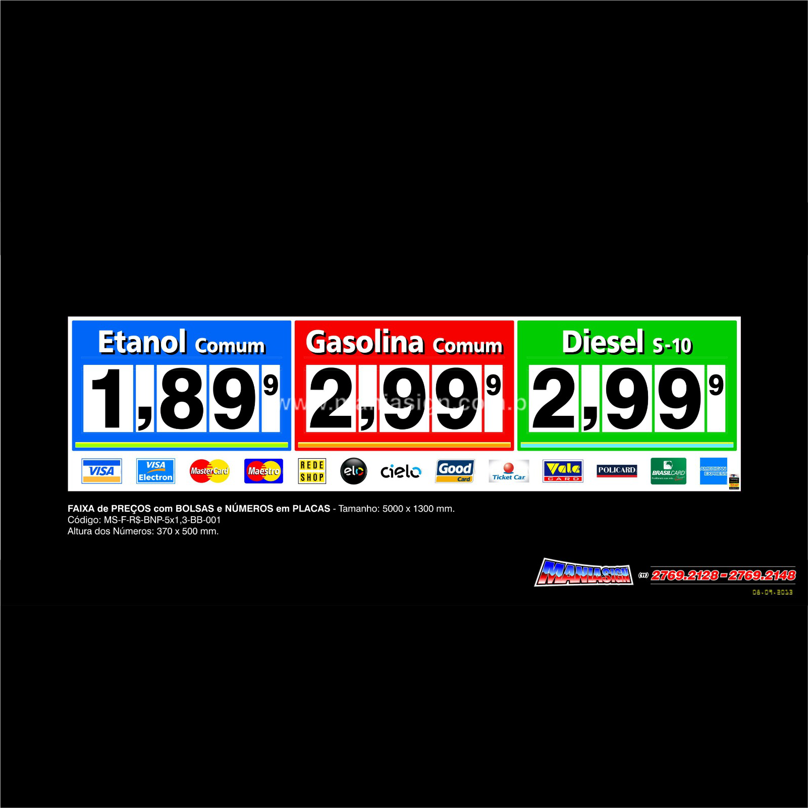 FAIXA de PREÇOS com BOLSAS e NÚMEROS em PLACAS – BB-001. PERSONALIZADA de acordo com as especificações de cada cliente.