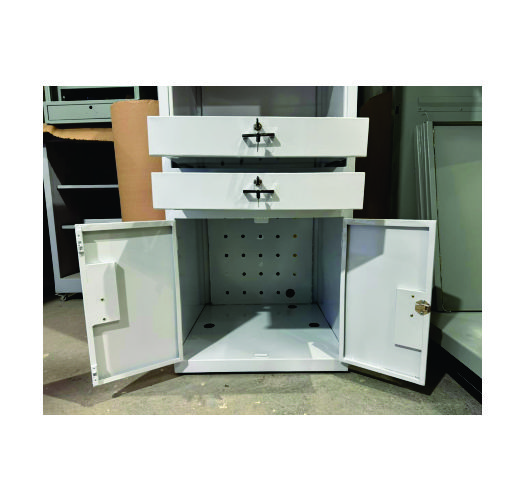 – GAVETAS e PRATELEIRAS: Confeccionados em Chapas Galvanizadas de Bitola 22 = 0,80 mm.