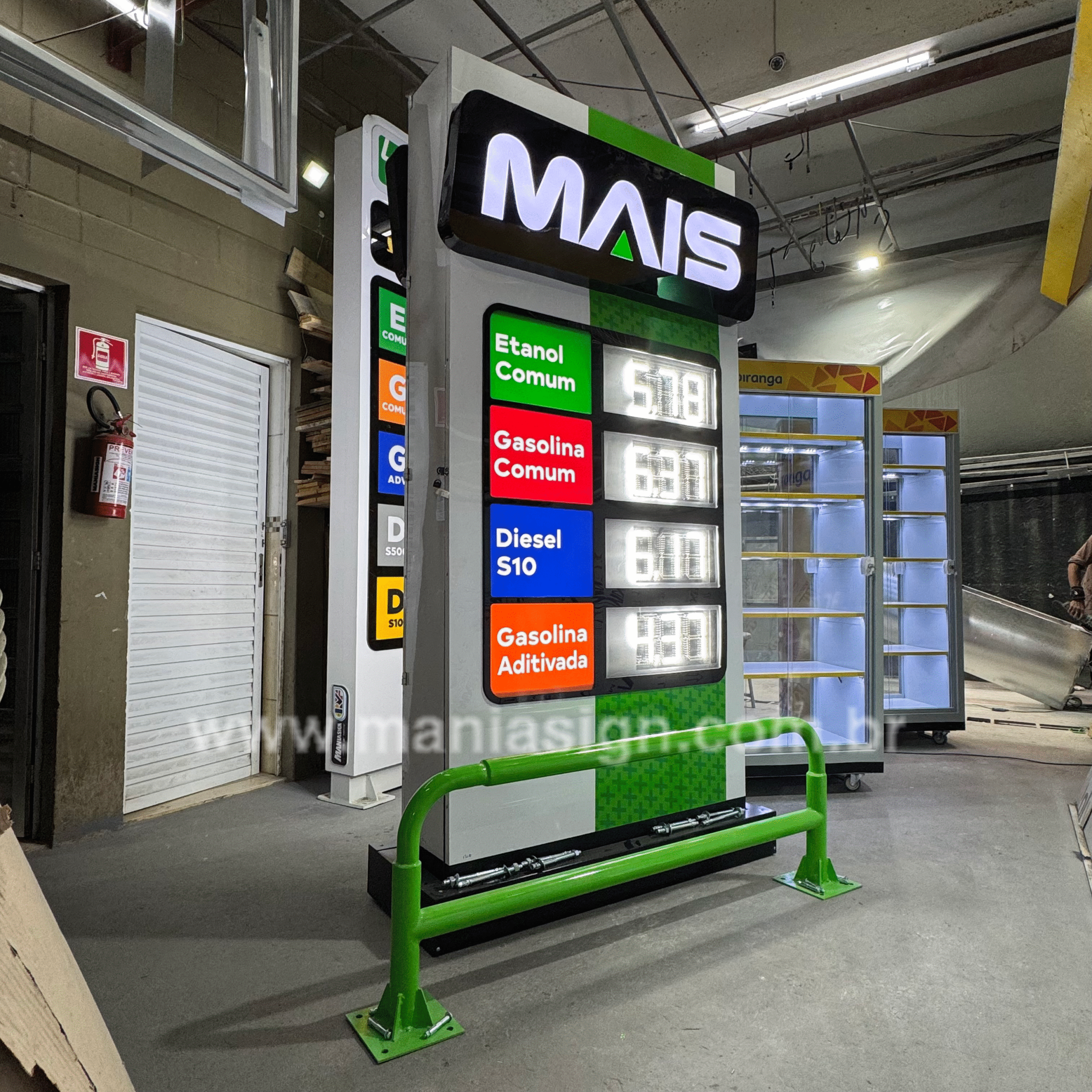 Confeccionado em Estrutura Tubolar Galvanizada, Pintura Automotiva, Elétrica Convencional e Substratos de Lona com Grafismo produzido em Adesivo Translúcido Importado através de Recorte Eletrônico.